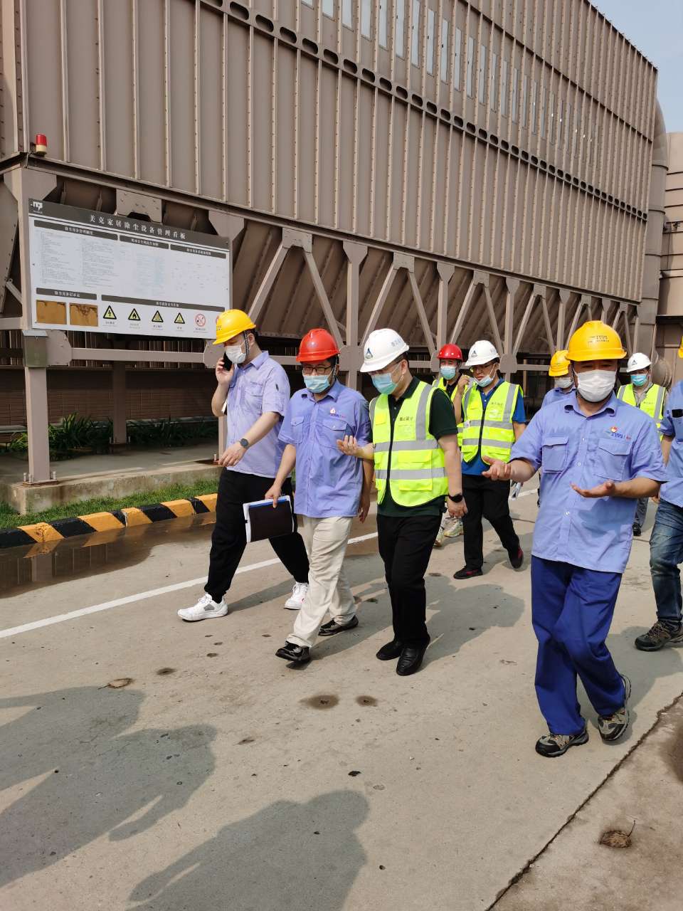 8月4日,公司董事長武文杰陪同天津泰達電力有限公司董事長兼總經理王衛華視察美克項目現場、慰問前線員工,副總經理孔祥輝一行陪同視察。